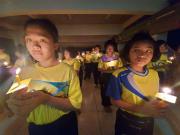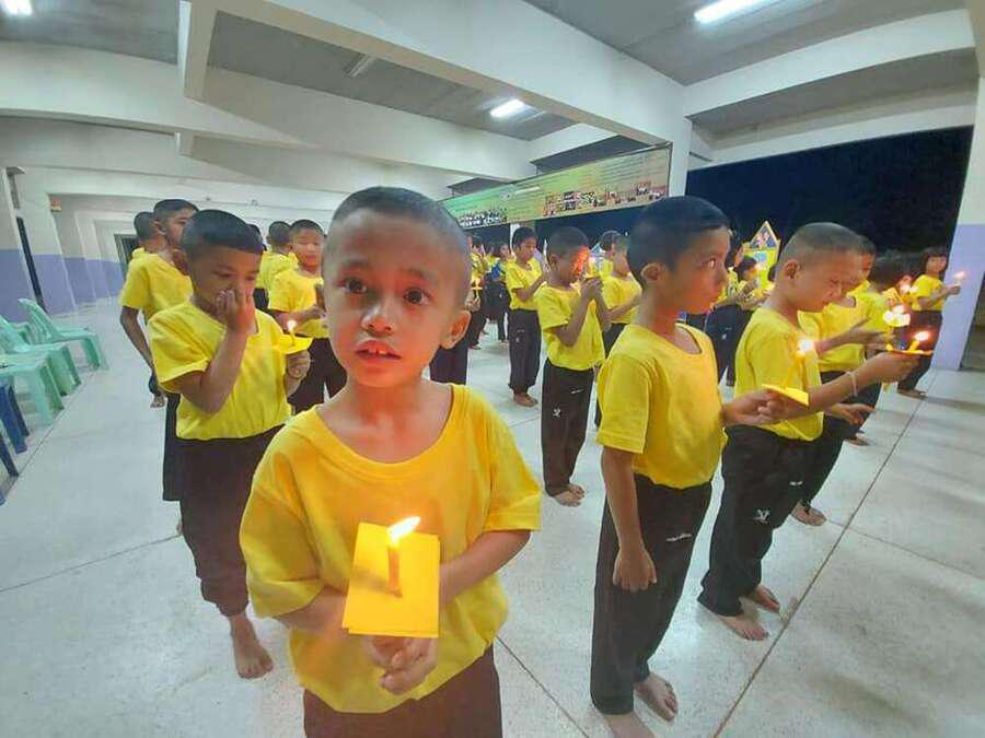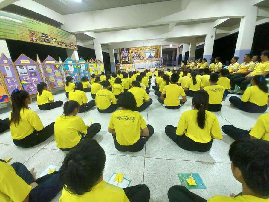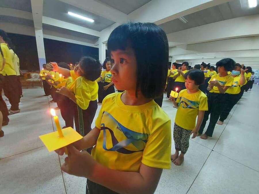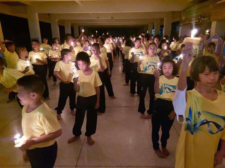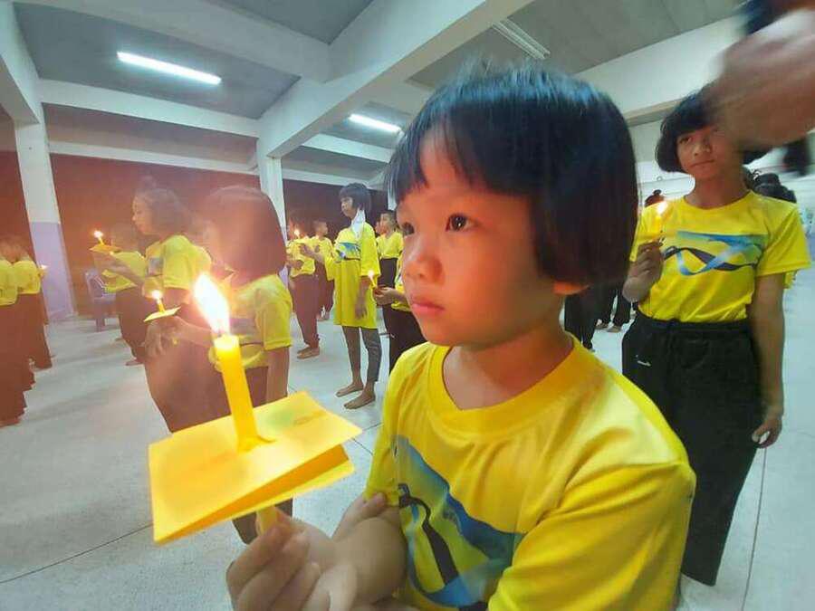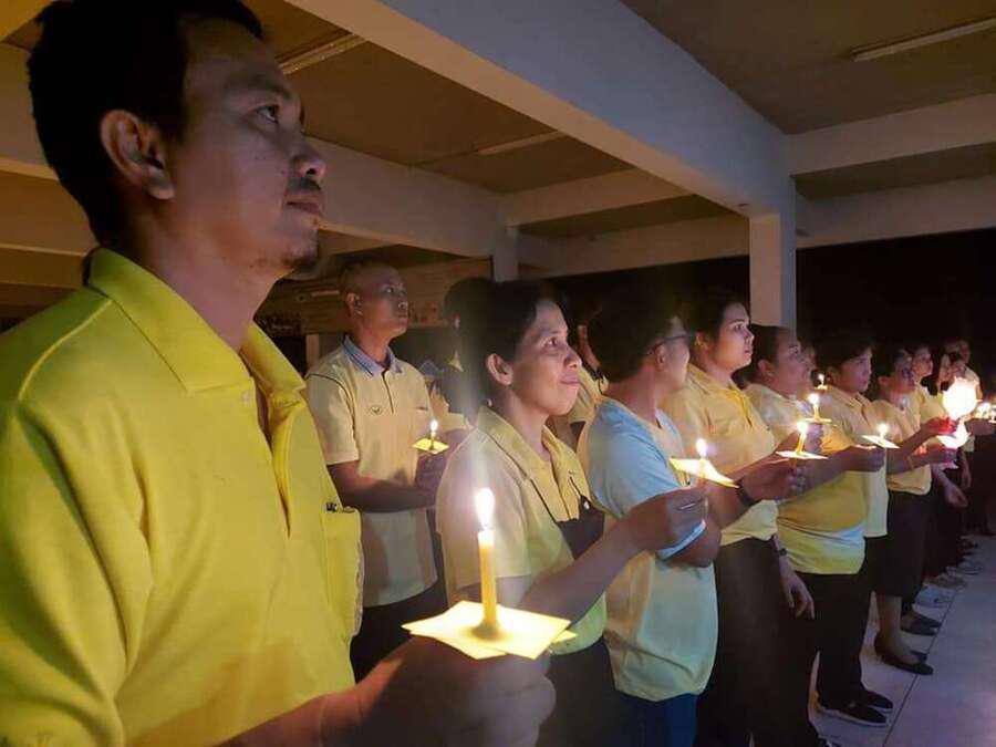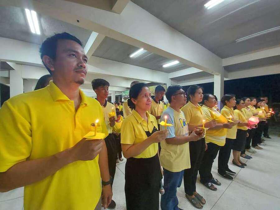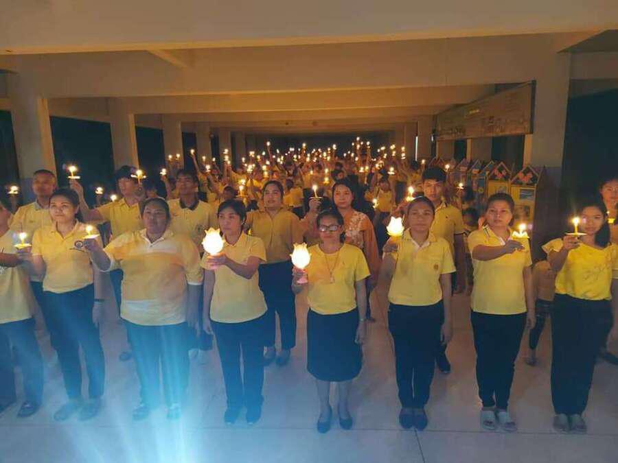 ผู้บริหาร คณะครู และนักเรียน ร่วมใจจุดเทียน วันพ่อแห่งชาติ