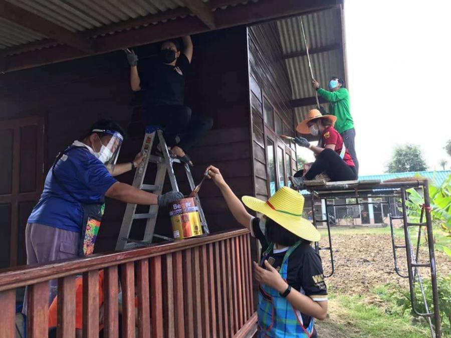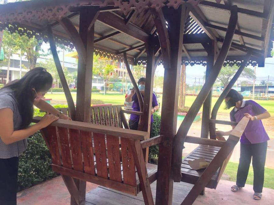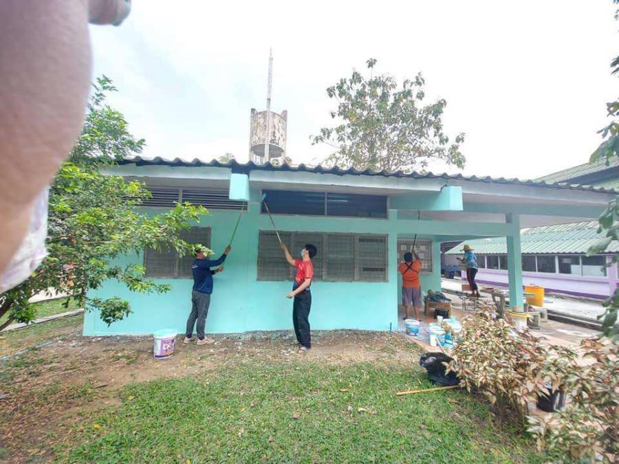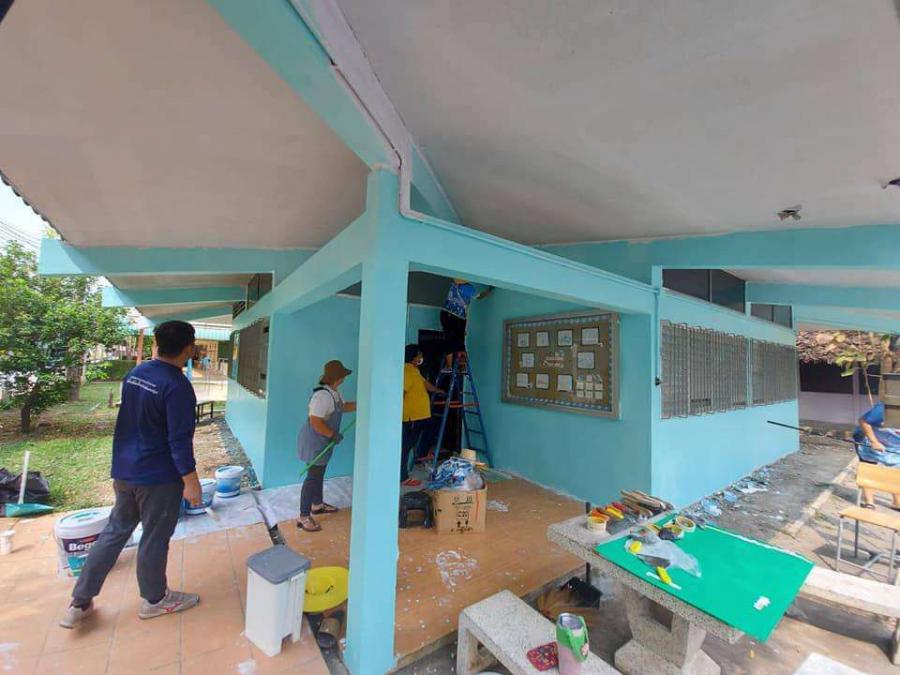 ????????#สามัคคีคือพลังร่วมสร้างสรรค์ร่วมพัฒนา ผู้บริหารคณะครูและบุคลากรโรงเรียนโสตศึกษาจังหวัดนครปฐมช่วยกันพัฒนาสถานศึกษาปรับปรุงภูมิทัศน์ของโรงเรียนให้สวยงามสะอาดโดยปรับปรุง ????ทาสีศาลาหน้าอาคารเรียน/ห้องพยาบาล/บ้านการเกษตร/อาคารเรียนอาชีพ/รั้วสระน้ำ S:0