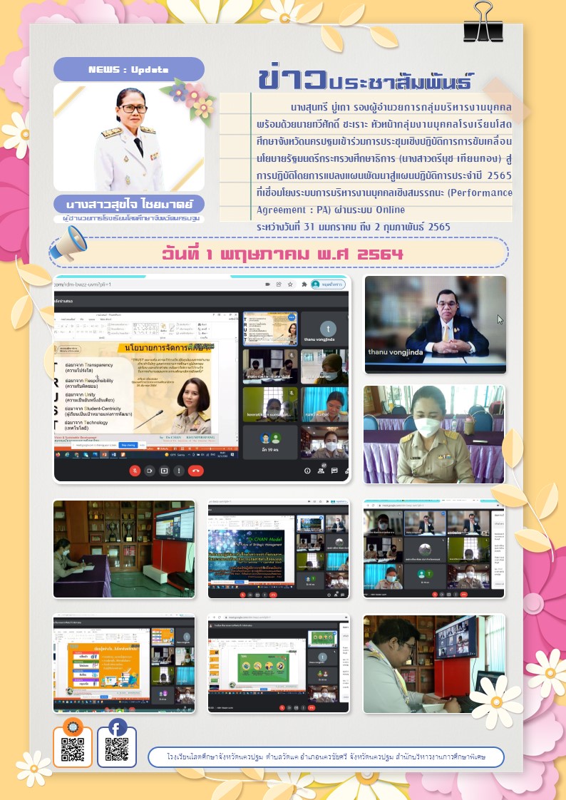 เข้าร่วมการประชุมเชิงปฏิบัติการการขับเคลื่อนนโยบายรัฐมนตรีกระทรวงศึกษาธิการ สู่การปฏิบัติโดยการแปลงแผนพัฒนาสู่แผนปฏิบัติการประจำปี 2565 ที่เชื่อมโยงระบบการบริหารงานบุคคลเชิงสมรรถนะ (Performance Agree