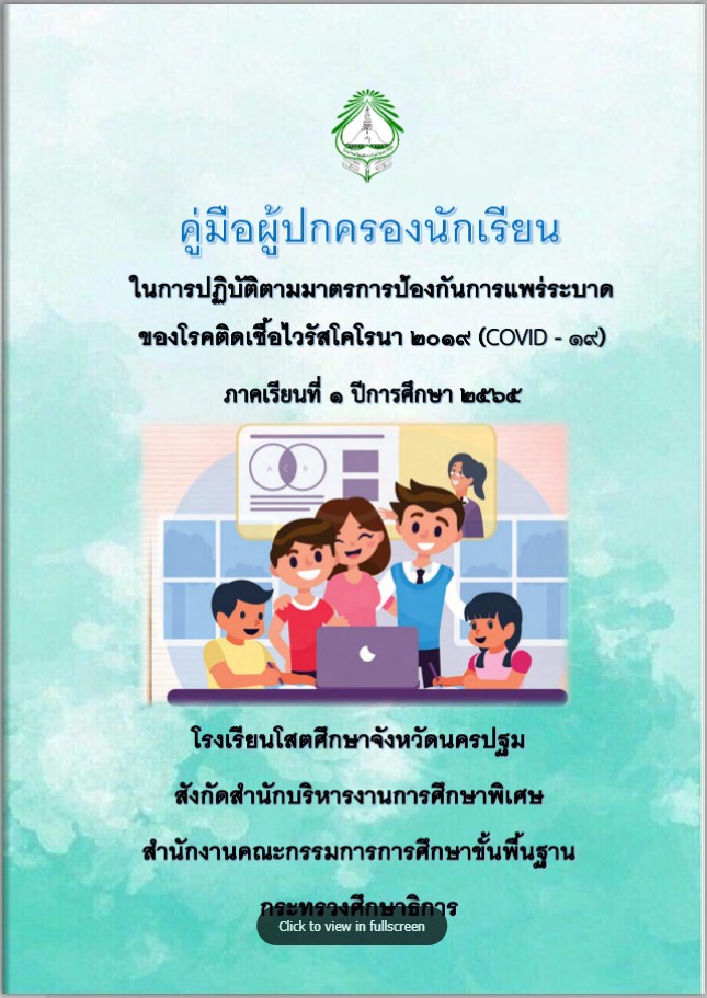 คู่มือสำหรับผู้ปกครองนักเรียนในการปฏิบัติตามมาตรการป้องกันการแพร่ระบาดของโรคโควิด19  โรงเรียนโสตศึกษาจังหวัดนครปฐม ภาคเรียนที่ 1  ปีการศึกษา 2565