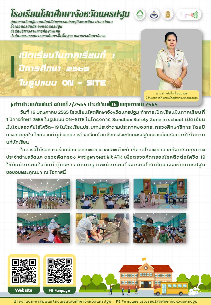 เปิดเรียนในภาคเรียนที่ 1 ปีการศึกษา 2565 ในรูปแบบ ON-SITE ในโครงการ Sandbox Safety Zone in school