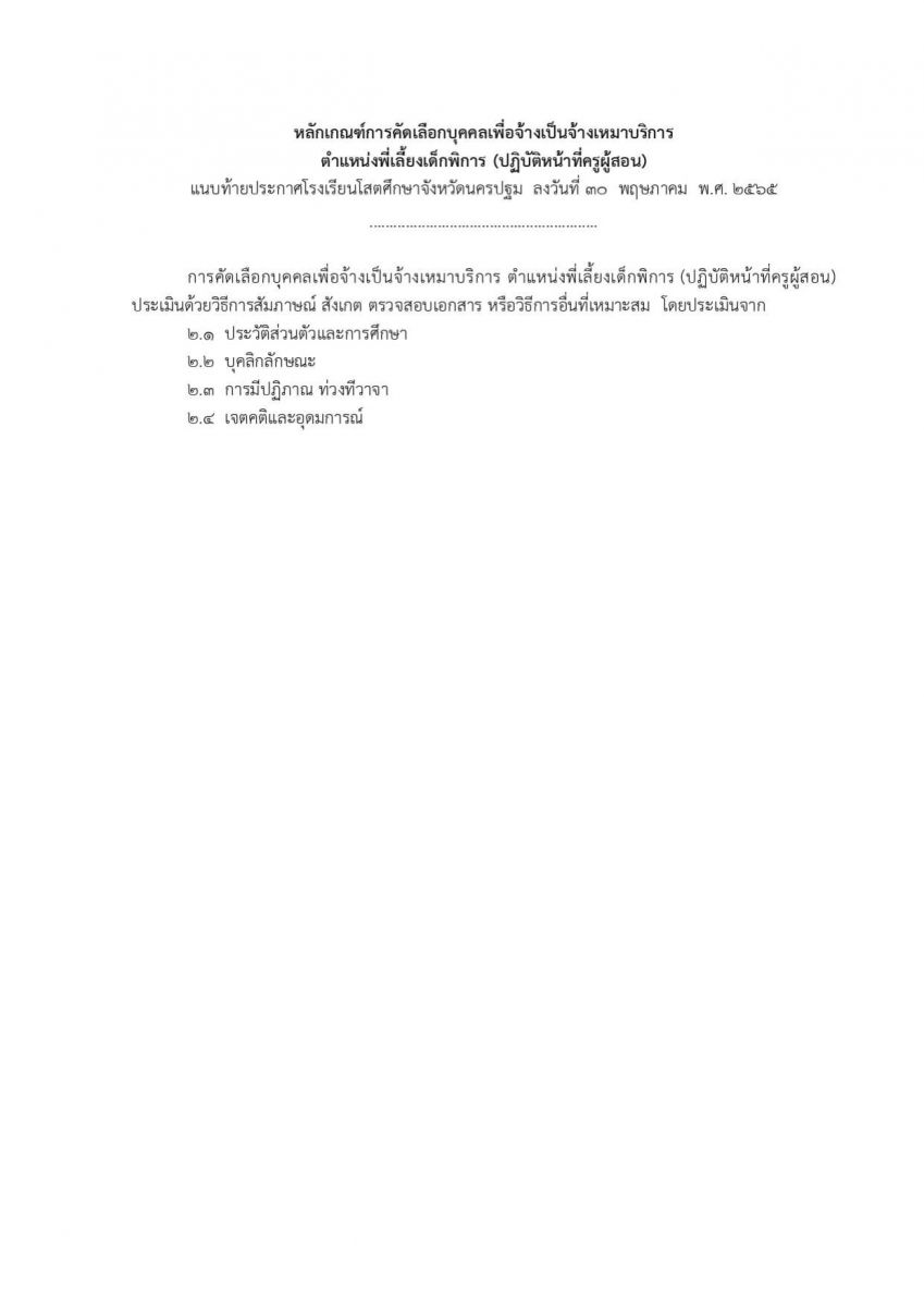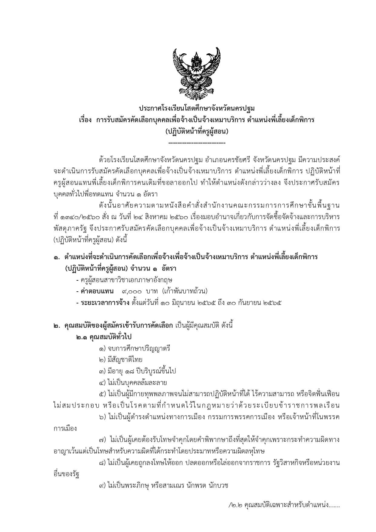 ประกาศรับสมัครบุคคลทั่วไป ตำแหน่งเด็กพี่เลี้ยงเด็กพิการ สาขาวิชาเอกภาษาอังกฤษ