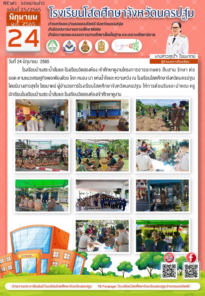 โรงเรียนสระน้ำส้มและโรงเรียนวัดสองห้อง เข้าศึกษาดูงานโครงการอารยเกษตร สืบสาน รักษา ต่อยอด ตามแนวเศรษฐกิจพอเพียงด้วย โคก หนอง นา แห่งน้ำใจและความหวัง ณ โรงเรียนโสตศึกษาจังหวัดนครปฐม