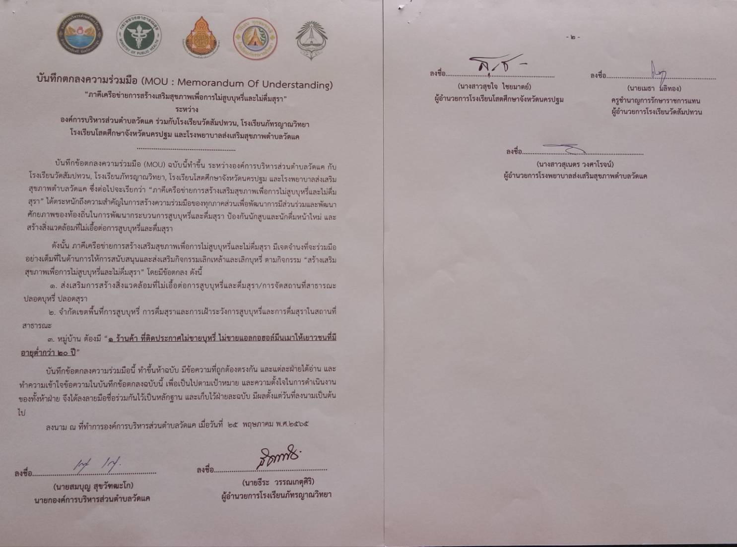 บันทึกตกลงความร่วมมือ MOU