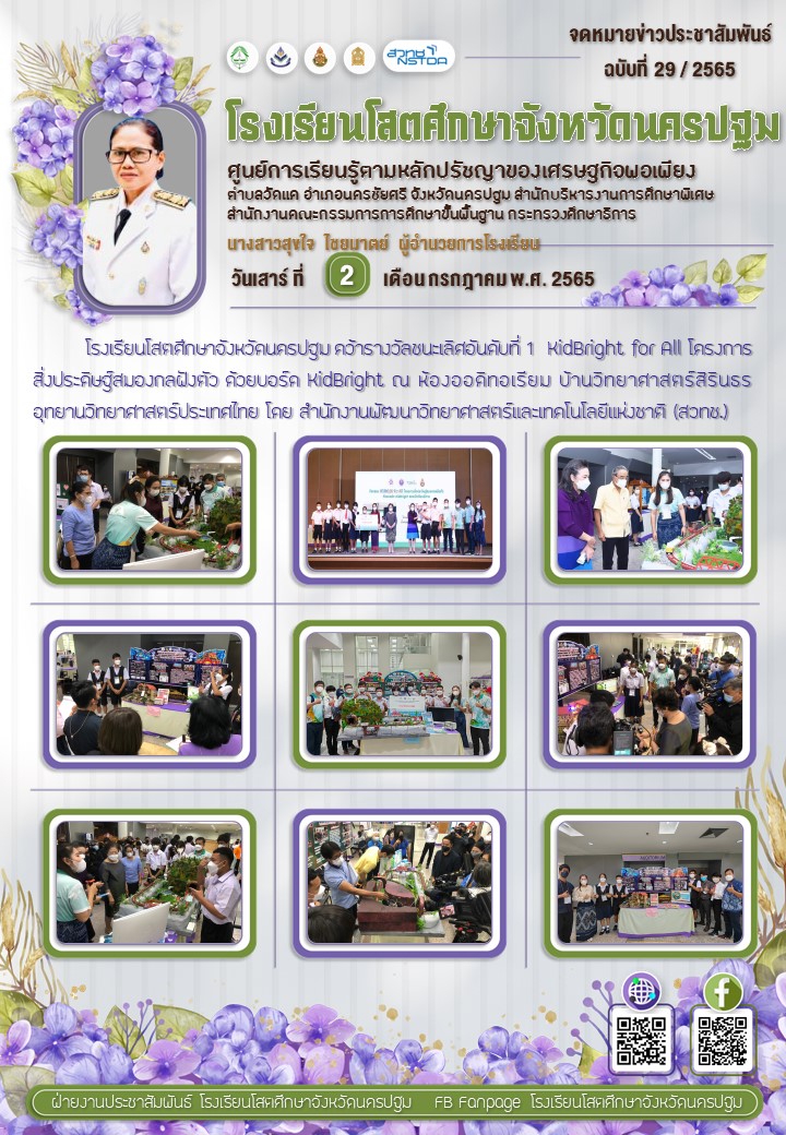 ขอแสดงความยินดีกับผู้บริหารคณะครูและนักเรียน คว้าแชมป์ KidBright for All โครงการสิ่งประดิษฐ์สมองกลฝังตัว ด้วยบอร์ด KidBright ณ ห้องออดิทอเรียม บ้านวิทยาศาสตร์สิรินธร