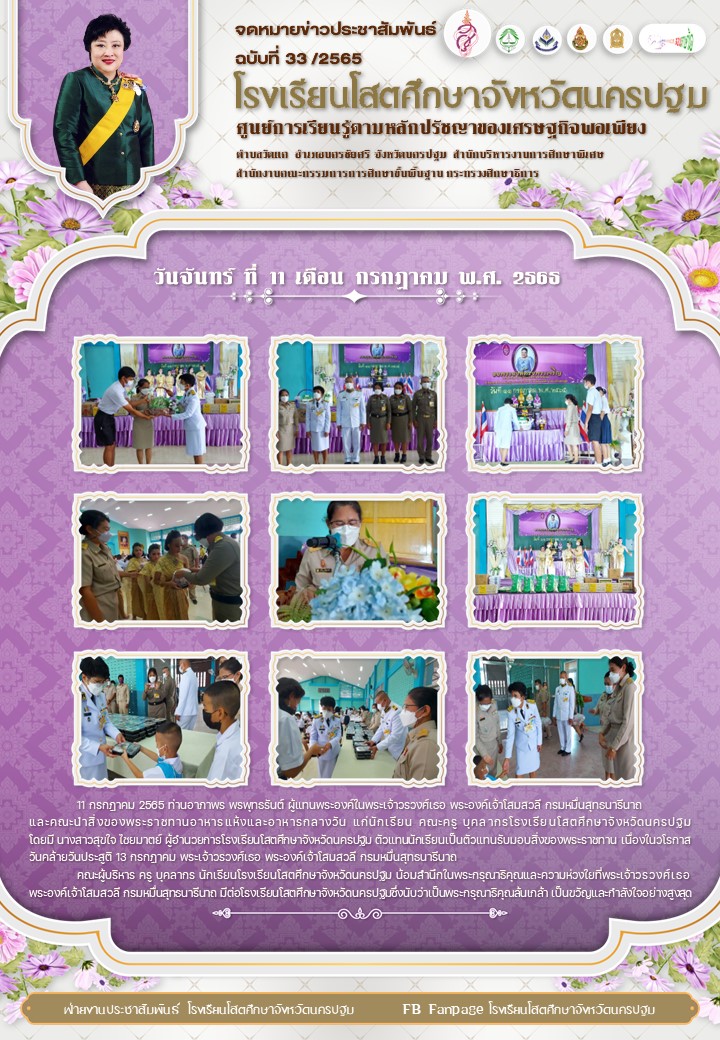พระเจ้าวรวงศ์เธอ พระองค์เจ้าโสมสวลี กรมหมื่นสุทธนารีนาถ ทรงโปรดเกล้าโปรดกระหม่อมให้คณะผู้แทนพระองค์ มามอบสิ่งของพระราชทานให้กับโรงเรียน