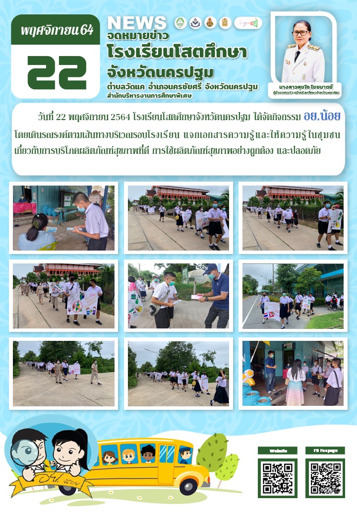 นักเรียนเดินรณรงค์ให้ความรู้ เรื่อง การบริโภคผลิตภัณฑ์และการใช้ผลิตภัณฑ์อย่างถูกต้อง แก่ชุมชนบริเวณรอบโรงเรียน