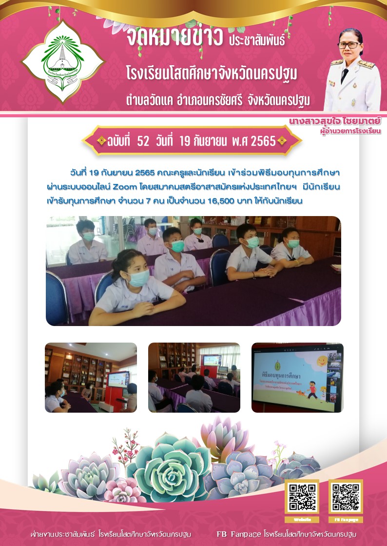 รับมอบทุนการศึกษา จากสมาคมสตรีอาสาสมัครแห่งประเทศไทย
