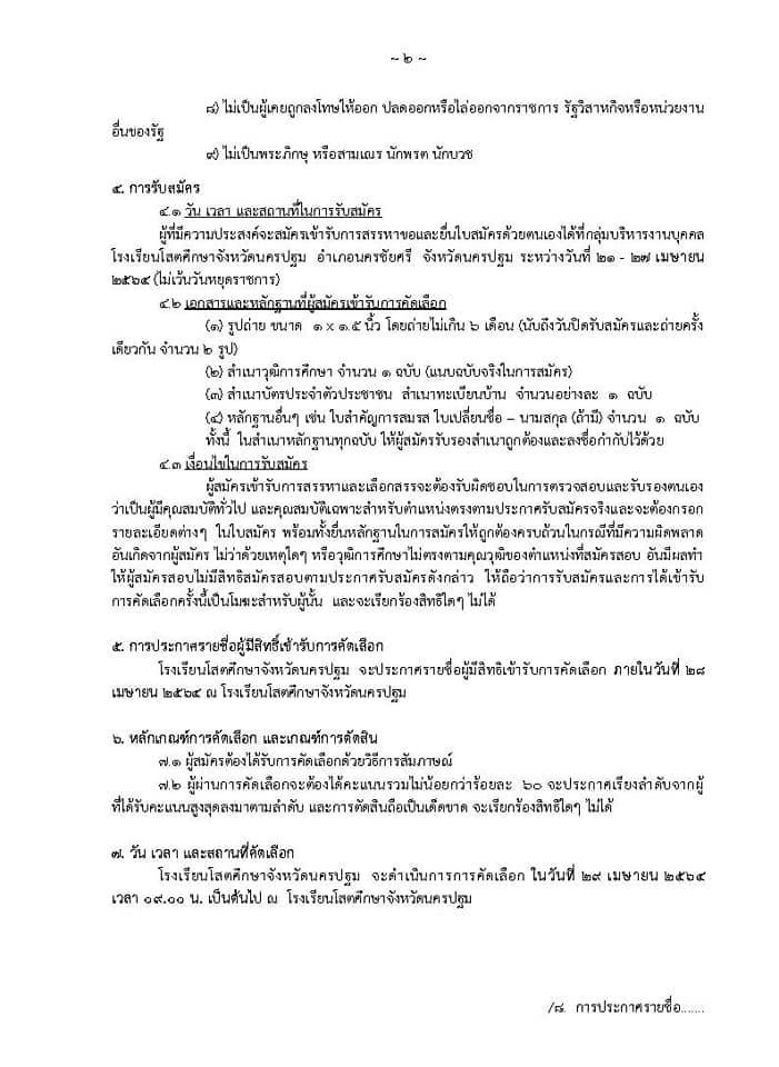 ด้วยโรงเรียนโสตศึกษาจังหวัดนครปฐม อำเภอนครชัยศรี จังหวัดนครปฐม มีความประสงค์จะดำเนินการรับสมัครคัดเลือกบุคคลเพื่อจ้างเป็นลูกจ้างชั่วคราว (จ้างเหมาบริการ) ตำแหน่งพี่เลี้ยงเด็กพิการ จำนวน 4 อัตรา ดังนี้
