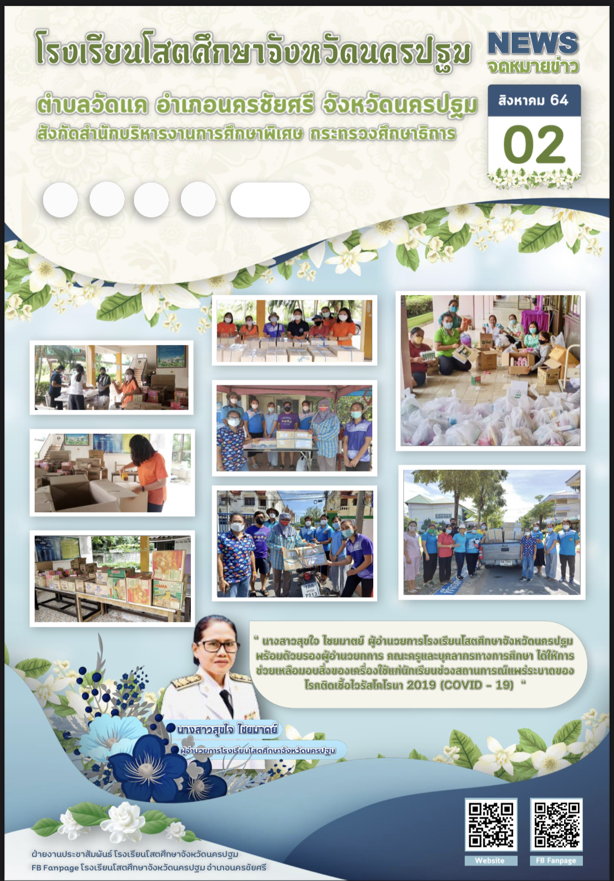 นางสาวสุขใจ ไชยมาตย์ ผู้อำนวยการโรงเรียนโสตศึกษาจังหวัดนครปฐม พร้อมด้วยรองผู้อำนวยการ คณะครูและบุคลากรทางการศึกษา ได้ให้การช่วยเหลือมอบสิ่งของเครื่องใช้แก่นักเรียนช่วงสถานการณ์แพร่ระบาดของโรคติดเชื้อไวรัสโคโรนา 2019 (COVID - 19)