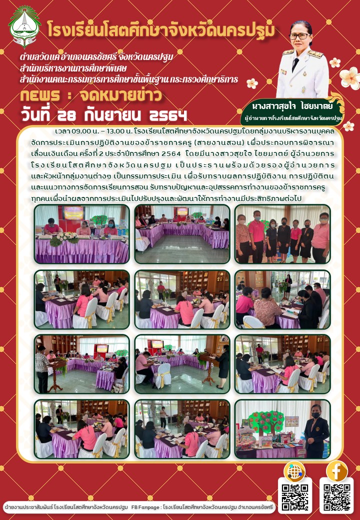 เวลา 09.00-12.00น.โรงเรียนโสตศึกษาจังหวัดนครปฐม โดยกลุ่มงานบริหารงานบุคคล จัดการประเมินการปฏิบัติงานของพนักงานราชการ